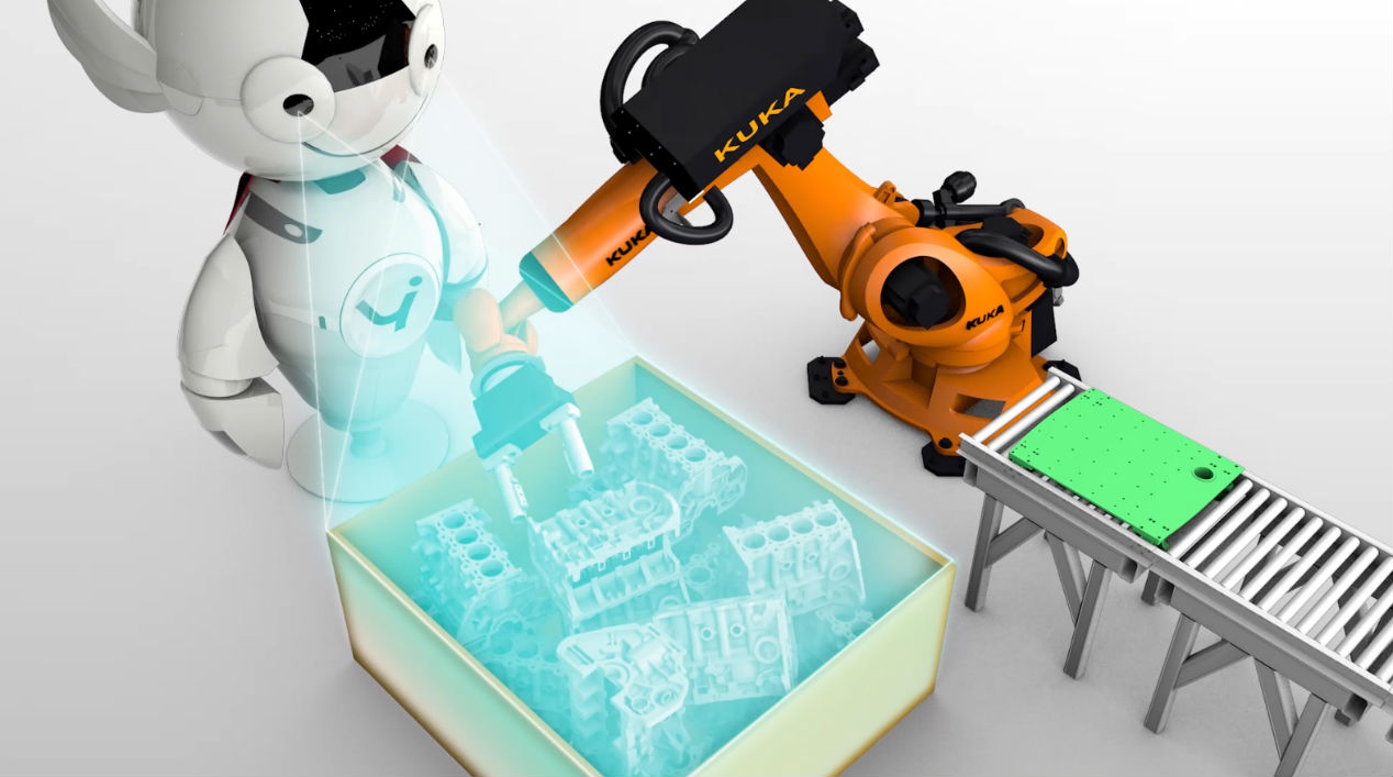 由long8龙联合欧洲科研机构研发的KINEYE®3D机器视觉系统,采用双摄像头人眼仿生设计,即两个视点观察同一景物,通过系统软件计算来获取目标的三维信息,以便引导机器人对任意复杂、摆放无序目标进行准确定位、抓取,从而实现生产制造中的自动上料、下料功能。这一过程犹如人眼观察景物,并在大脑中成像,然后对手臂下达拾取指令。KINEYE®3D机器视觉,一举攻破困扰企业多年的难题,不但有效节省了人工成本,更大幅度的提高了生产效率。